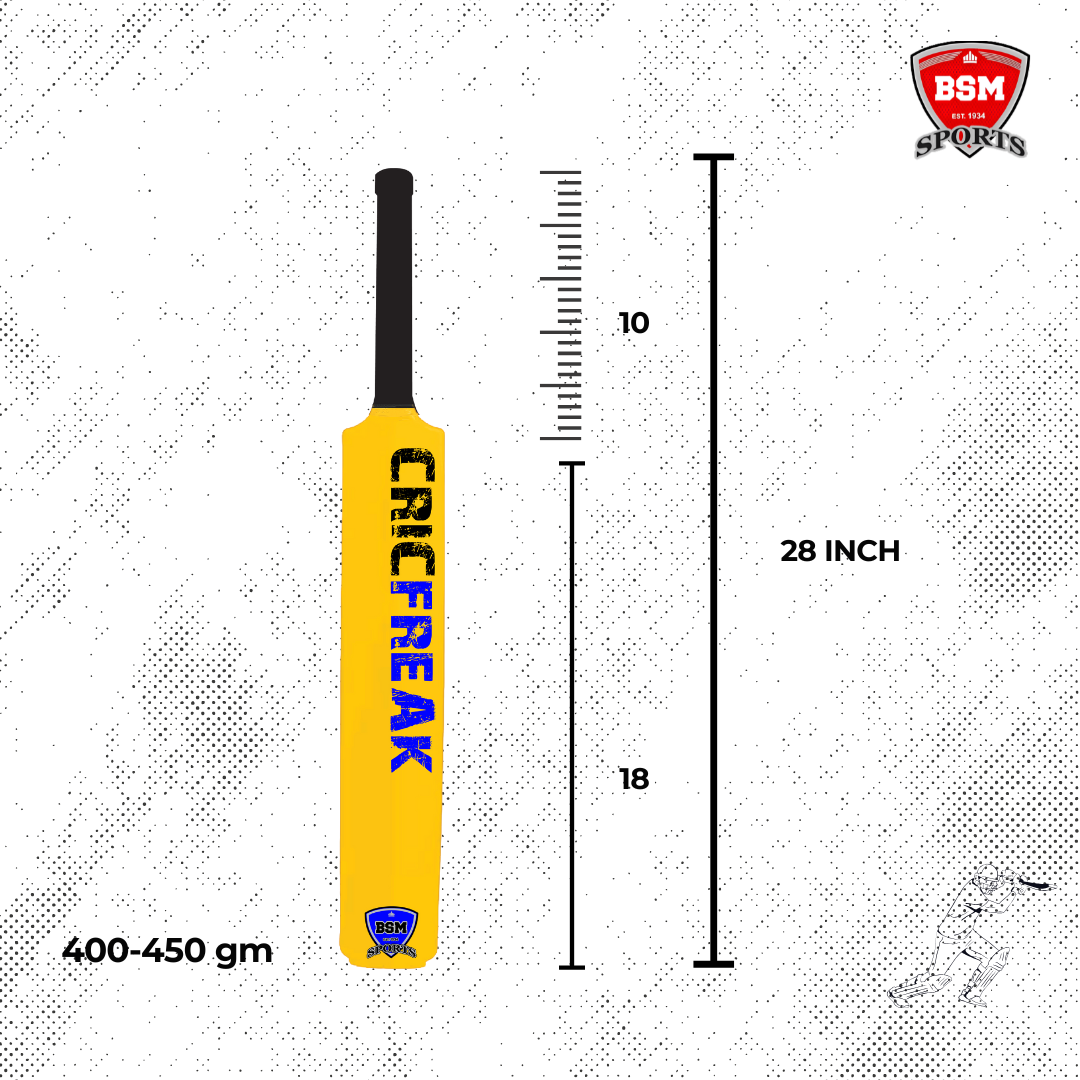 The BSM Yellow CricFreak Polymer Cricket Bat is built for players who demand both strength and performance. Constructed with premium polymer, this bat offers exceptional durability and resilience, making it perfect for intense cricket matches. Its lightweight and well-balanced design provide effortless maneuverability, allowing players to execute powerful and accurate shots with ease. The enlarged sweet spot enhances impact, while the ergonomic grip ensures superior comfort and control during long play sessions. With its striking yellow finish, the CricFreak Polymer Bat combines style and performance, making it the ideal choice for cricketers at any level.